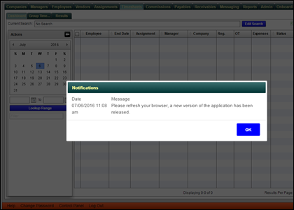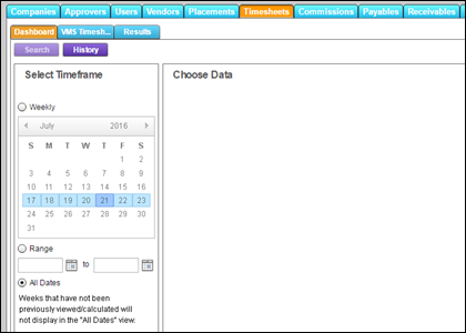 When performing a search for timesheets or invoices and using the "All Dates" option, a message is now visible indicating that any invoices or timesheets from previous weeks that have not already been viewed will not be visible with the ...