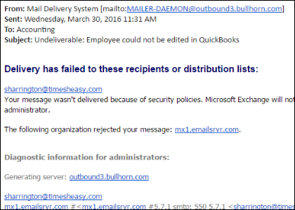 We've made an update to error handling with QuickBooks desktop. An email is still sent to administrators if an error occurs when using QuickBooks desktop and Bullhorn Back Office.