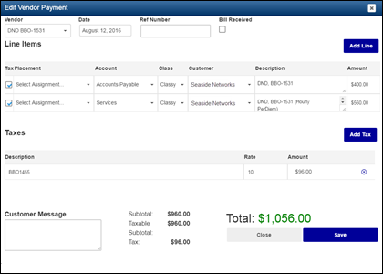 You can now assign tax profiles to Vendors and update tax amounts on Vendor payables. We've also updated the Vendor payable editor with a new look and feel, similar to the receivables invoice editor. Taxes are optional for Vendors and ar...