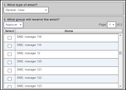 When sending a "General - User" email reminder to Managers, the list of available managers is now separated by 100 per page. You can simply check the managers...
