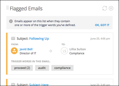 A new Pulse card for Companies, Flagged Emails, is now available! Any emails from contacts that contain “trigger words” (those your company have deemed important, which your your administrator defines) will appear here so that you may take appropriate action. For example, if your administrator has chosen “proceed” as a trigger word, the card will display all inbound emails containing the word “proceed” from contacts at the selected company, and you’ll be able to quickly identify what action is required.