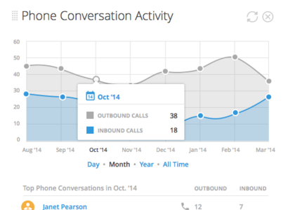 You can now use Pulse to track your phone conversation activity! Driven by the Pulse Configuration page, the Phone Conversation Activity card can be used to track call history with a person or company. Users can also select a data point to view a log of calls made during that time period. This log will appear differently for companies and contacts.